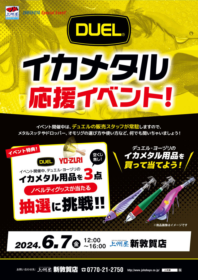2024年6月7日(金)12:00~16:00、上州屋新敦賀店にてDUELデュエル、イカメタル応援イベントを開催します!