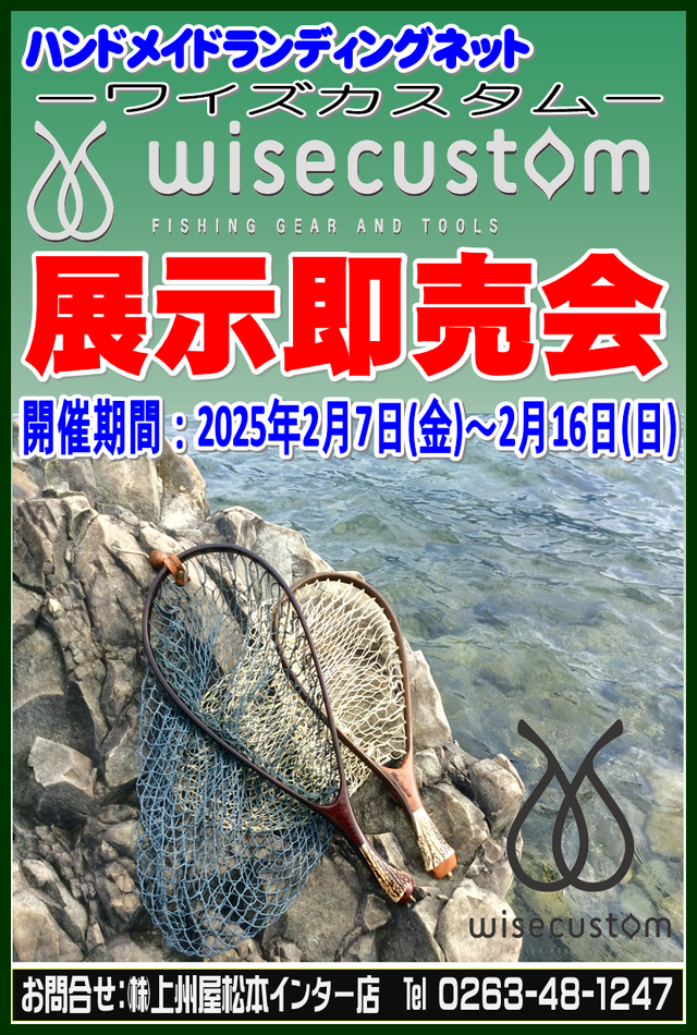 2025年2月7日(金)~16日(日)の10日間、上州屋松本インター店にてワイズカスタム、ハンドメイドランディングネットの展示即売会を開催します!