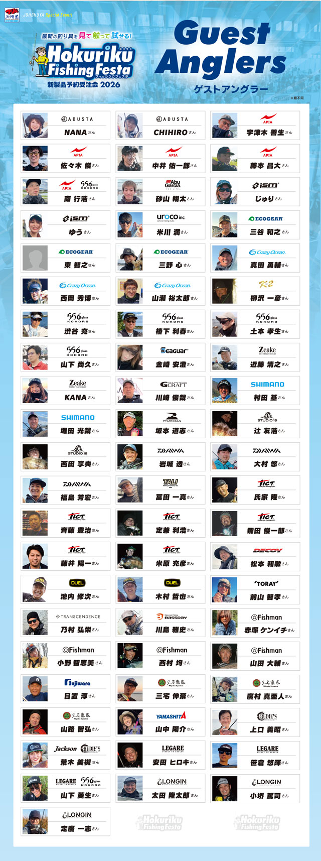 ※上記来場ゲストアングラー情報は本ページ更新日時時点の情報です。諸般の事情により変更を伴う場合がございますので予めご了承下さい。