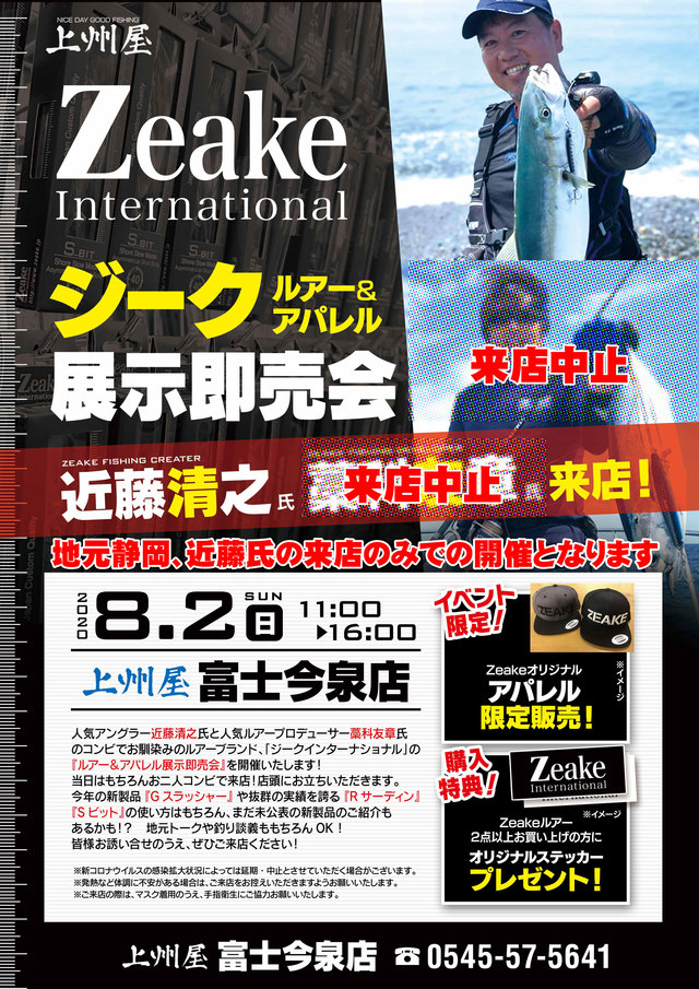 内容変更あり【富士今泉店】Zeake(ジーク)ルアー&アパレル展示即売会開催!近藤清之さんが来店します!