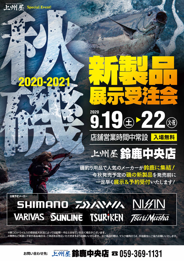 【鈴鹿中央店】磯釣り人気メーカーが鈴鹿に集結!2020-2021「秋磯新製品展示受注会」開催!