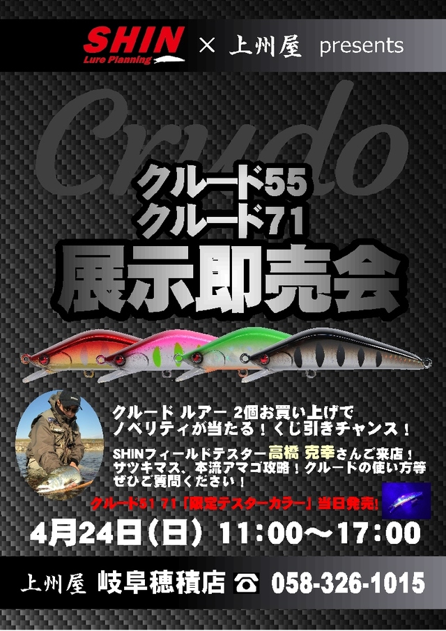 【岐阜穂積店】SHINルアープランニング「クルード71」「クルード55」展示即売会!