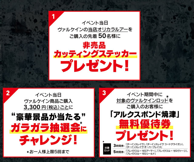 【特典その3】今回イベントにてヴァルケイン対象ロッドをご購入のお客様に、アルクスポンド焼津無料優待券(※)プレゼント