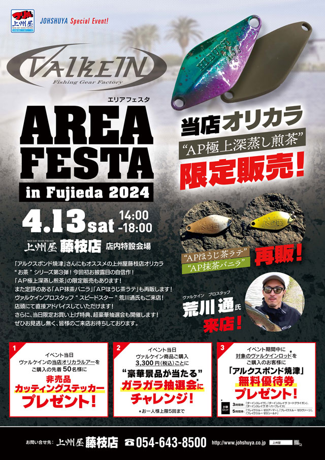 2023年4月13日(土)14:00~18:00(日)上州屋藤枝店にてエリアトラウトイベント“AREA FESTA in Fujieda2024”を開催します!