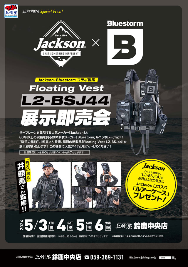 【鈴鹿中央店】ジャクソン×ブルーストーム、コラボフローティングベスト「L2-BSJ44」展示販売会!