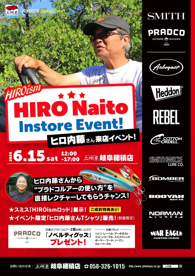 2024年6月15日(12:00~17:00、上州屋岐阜穂積店ヒロ内藤さんが来店!HIROismヒロイズム・インストアイベントを開催します!