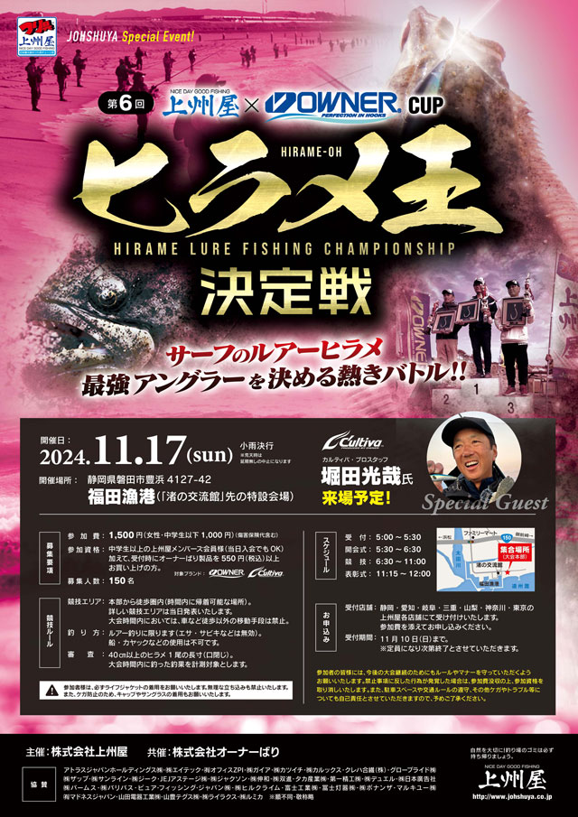 当日はスペシャルゲストとして、カルティバ・プロスタッフ堀田光哉さんが来場予定!