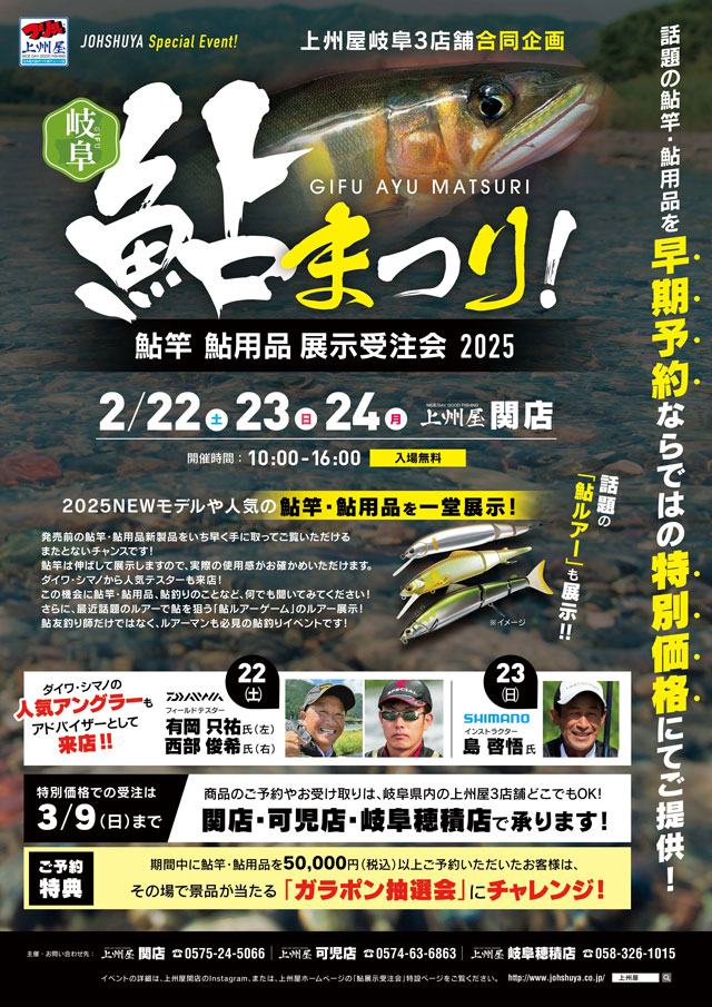 【関店】岐阜県内3店合同「岐阜鮎まつり!」2025鮎竿・鮎用品展示受注会!