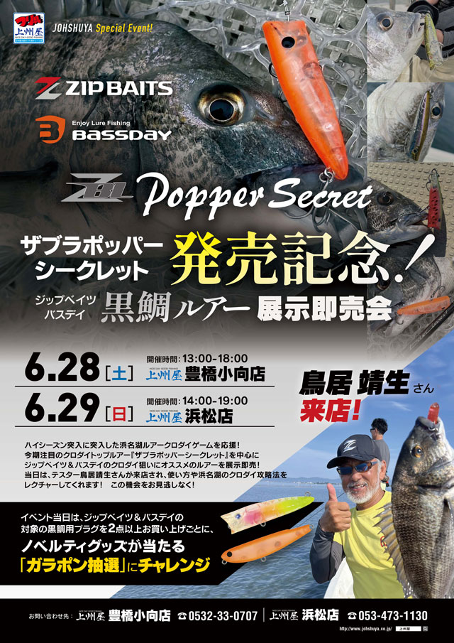 【浜松店】ザブラポッパーシークレット発売記念!ジップベイツ&バスデイ黒鯛ルアー展示即売会!鳥居靖生テスター来店!
