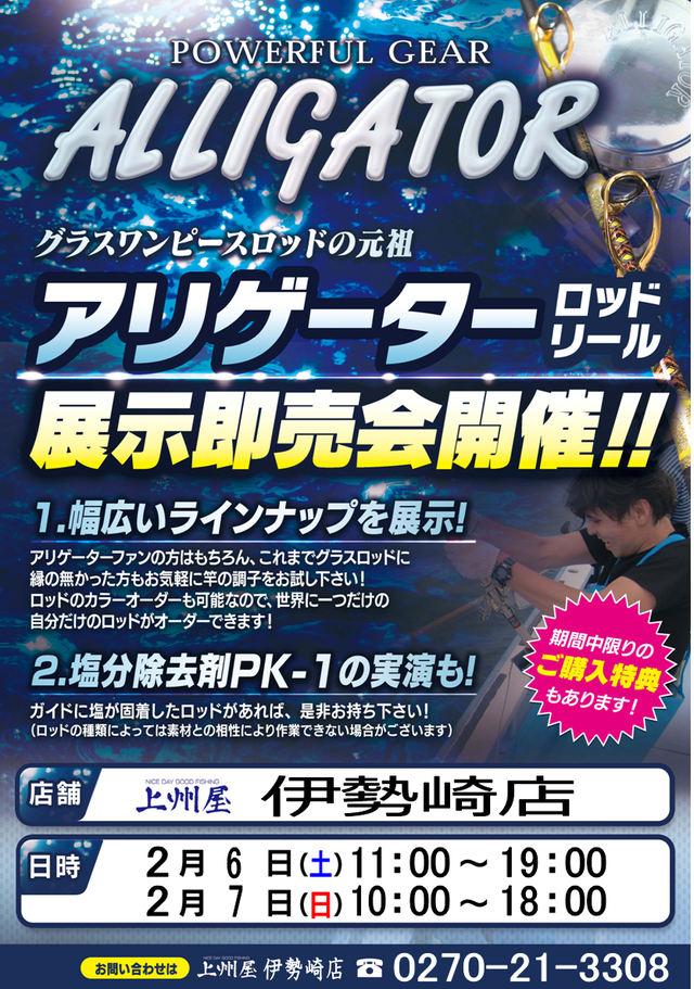 【伊勢崎店】グラスワンピースロッドの元祖「アリゲーター展示即売会」
