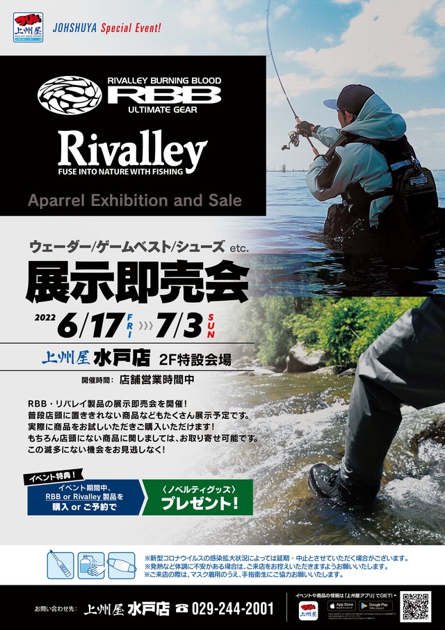 【水戸】RBB|Rivalley製ウェーダー、ゲームベスト、シューズetc.展示即売会!