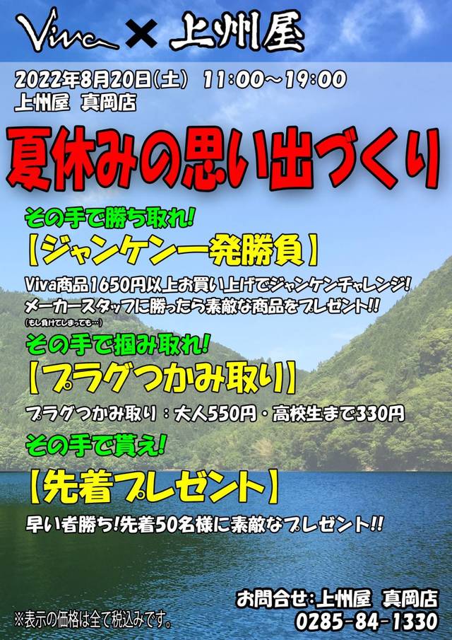 人気のViva(バスルアーアイテム)を展示販売!メーカースタッフも来店予定、製品について不明な点や効果的な使い方など、お気軽にご質問下さい!