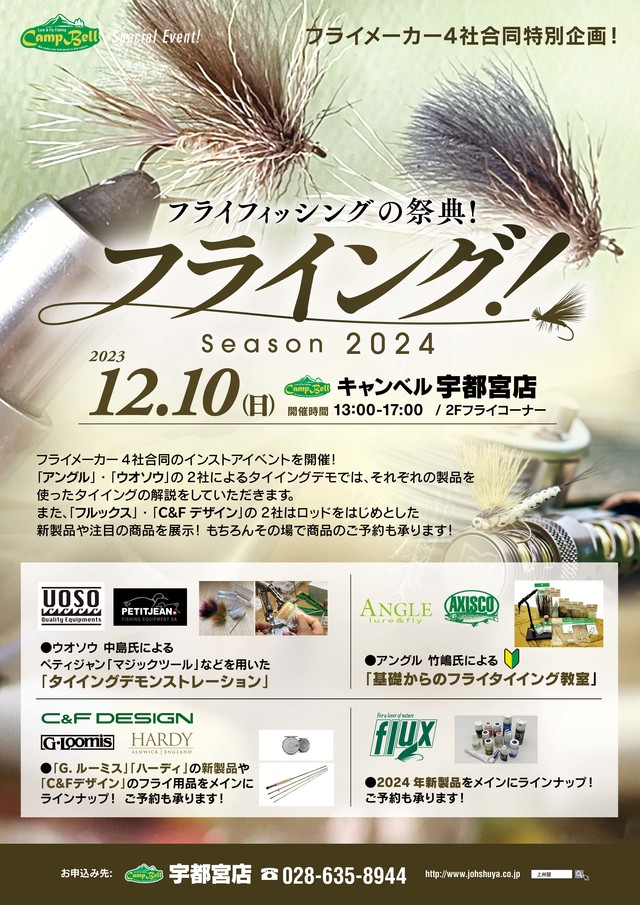 2023年12月10日(13:00~17:00、キャンベル宇都宮店にてフライフィッシングの祭典!~フライング!Season2024を店頭開催します!