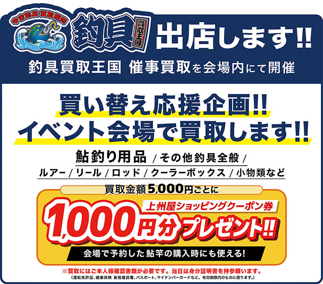鮎ファン待望“地区最大級”のNEWモデル鮎竿・鮎用品予約受注会!エリア続々拡大中の鮎ルアー用品の展示受注も実施します!屋外では恒例の鮎釣りおススメ車両展示も!