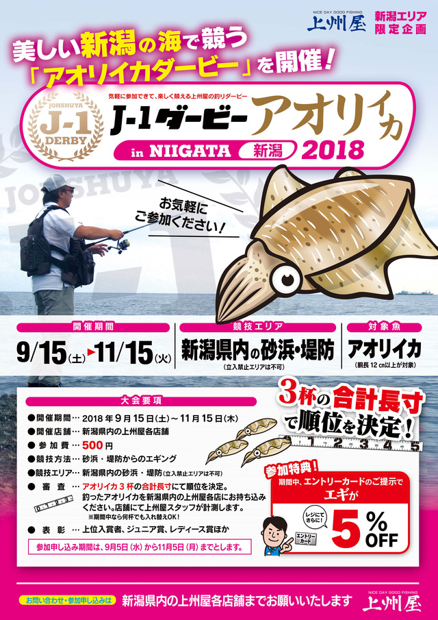 2018/9/15~11/15〔新潟地区限定〕J-1ダービーアオリイカin新潟、開催のご案内!