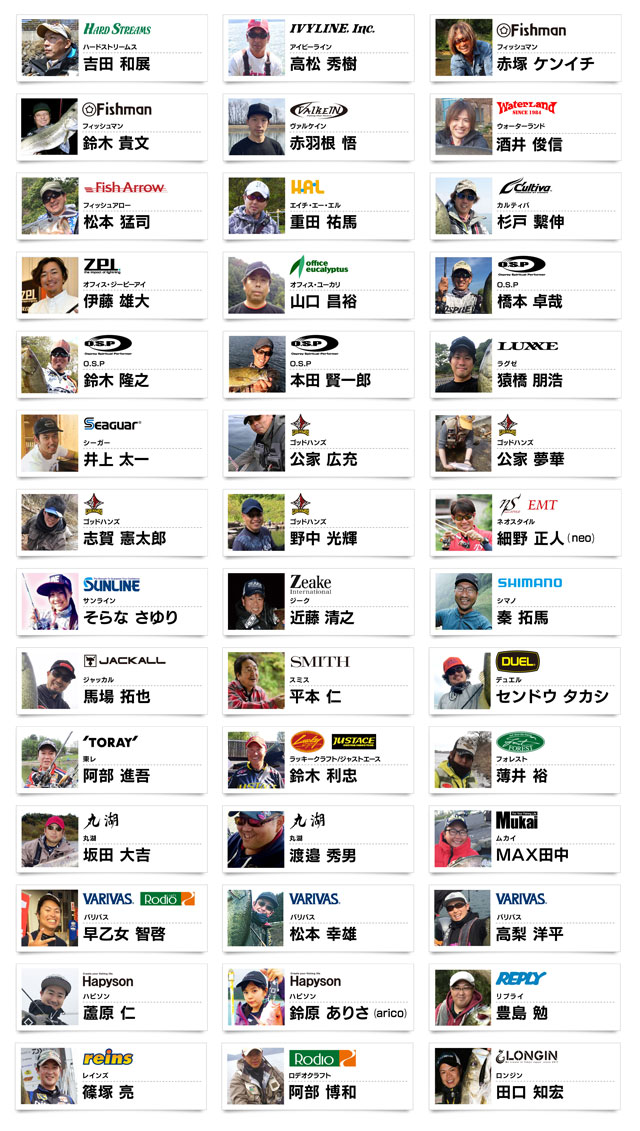 ※敬称略、順不同※上記ゲストアングラー情報は本ページ更新日時時点の情報となります。ゲストアングラーの来場およびイベント内容は変更を伴う場合がございますので予めご了承下さい。