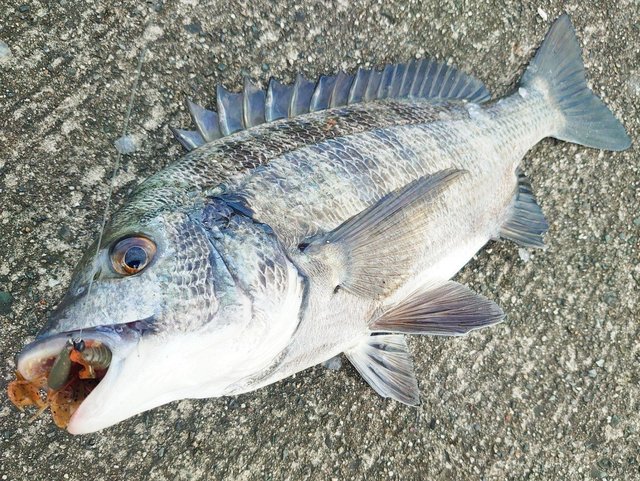 クロダイに似るがヒレが黄色く、よりルアーにアグレッシブなキビレ