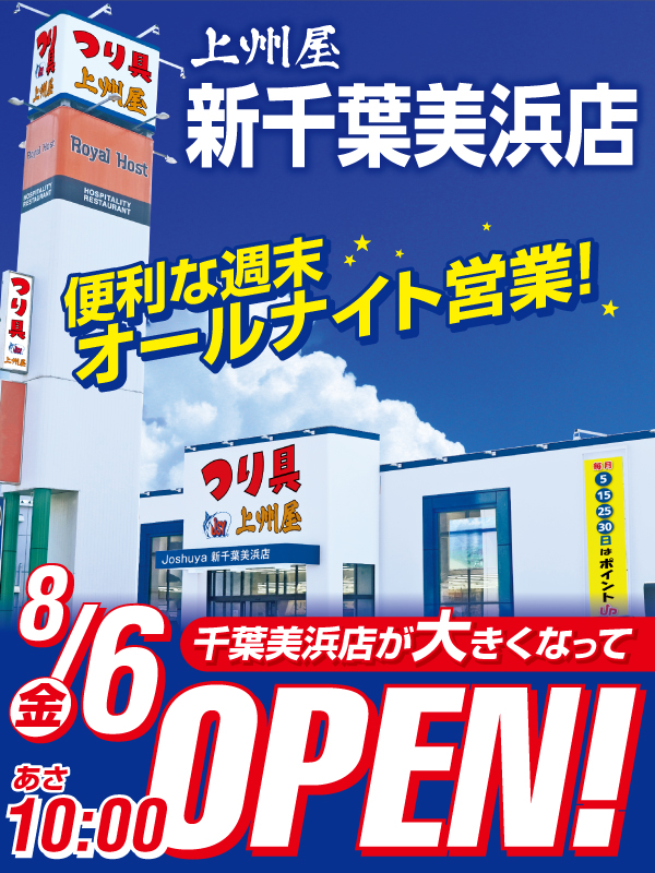 上州屋新千葉美浜店は、2021年8月6日(金)朝10時オープン予定です。