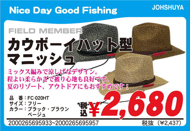 RYOBI“フィールドメンバー”シリーズより、「アドベンチャーハットFC-021HT」および「カウボーイハット型マニッシュFC- 020HT」を好評販売中です!