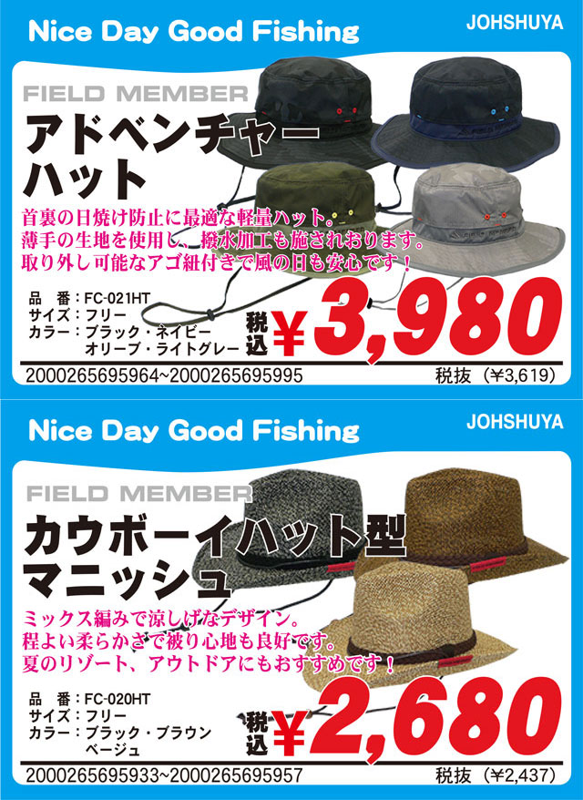 RYOBIフィールドメンバー「アドベンチャーハットFC-021HT」&「カウボーイハットFC- 020HT」好評販売中!