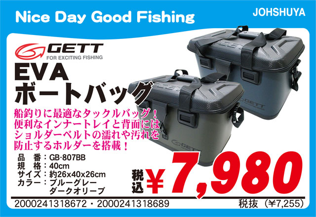 GETT(ゲット)より、船釣りに最適な「EVAボートバッグ(GB-807BB)」を好評販売中!
