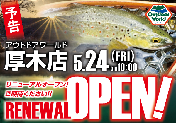 この度、上州屋アウトドアワールド厚木店は2024年5月24日(金)店内品揃えを強化しリニューアルオープンさせて頂くことになりました。