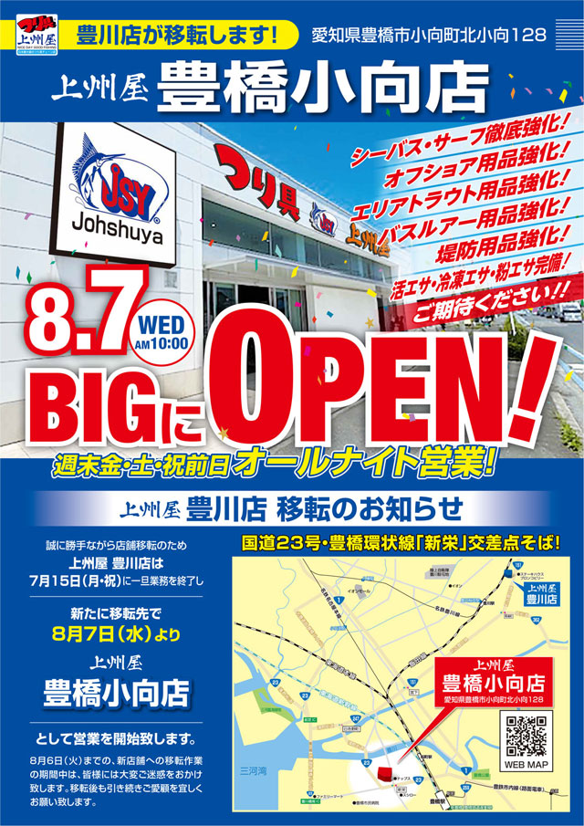 また、8月7日(水)上州屋豊橋小向店オープンの際には盛大にオープンセールを開催しますので、どうぞご期待ください!