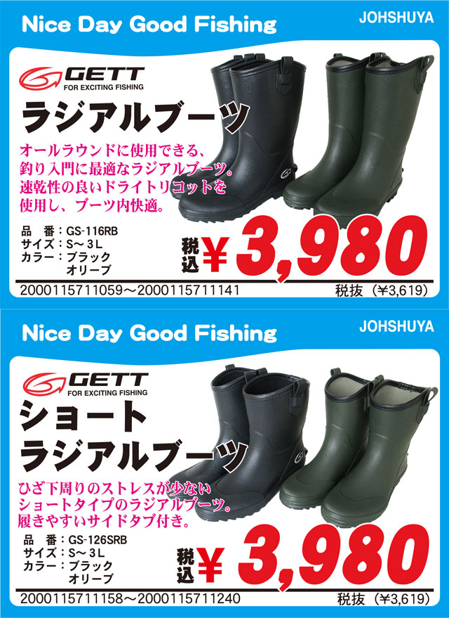 GETTゲットより、オールラウンドに使える「ラジアルブーツ(GS-116RB)」&「ショートラジアルブーツ(GS-126SRB)」発売!