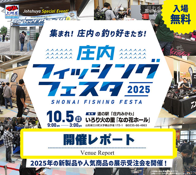 庄内フィッシングフェスタ2025新製品予約受注会、地元庄内のみならず近隣都道府県からも多くの皆様にご来場いただき、誠にありがとうございました。今後とも上州屋では皆様に喜んで頂けるイベントを企画してまいります。