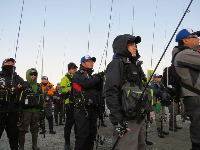 朝の空は晴れ渡り、空気は冷たいものの荒れた前日とは打って変わって風も穏やかな絶好の釣り日和に恵まれました!